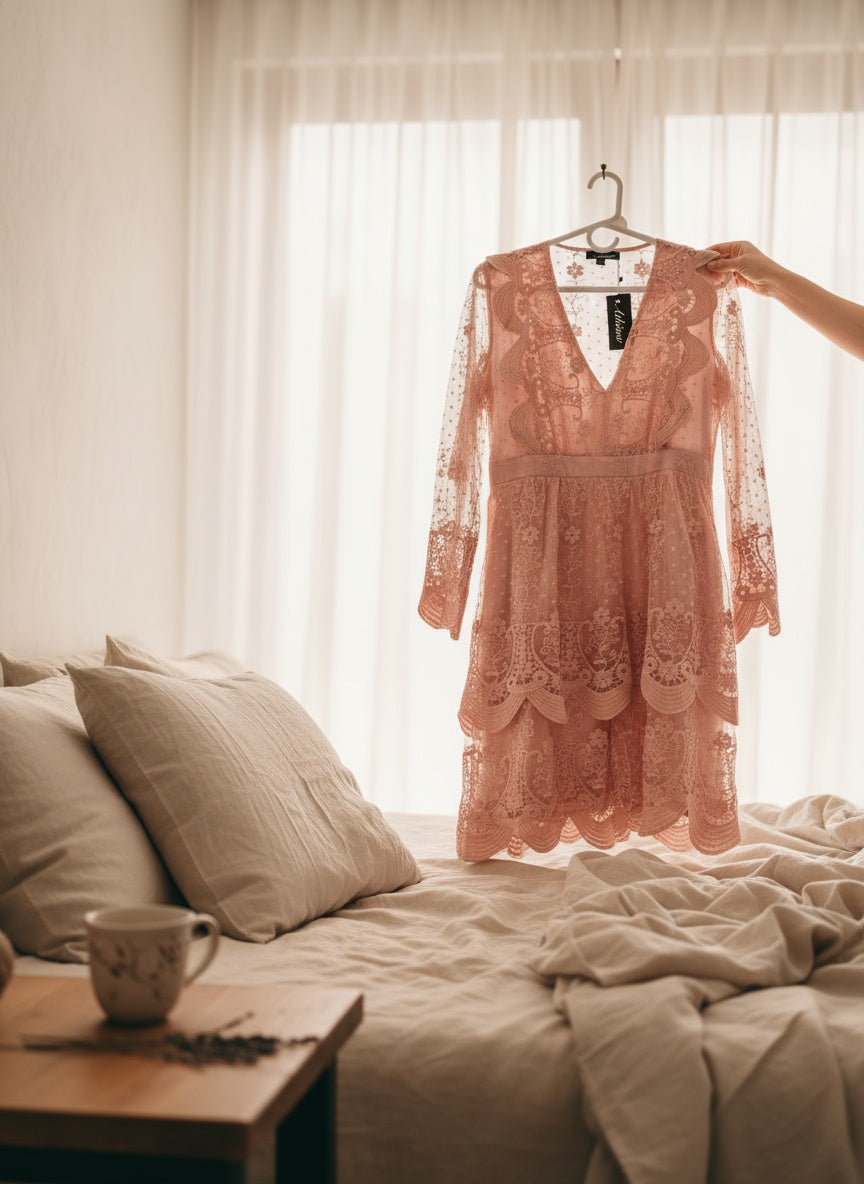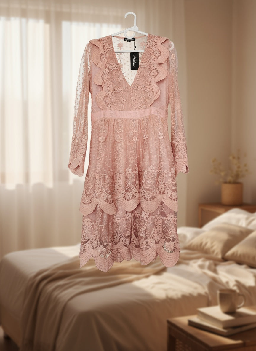 Add Lace Ruffled Dress in Dusty Pink to the cart
